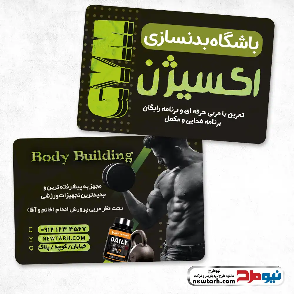 طرح لایه باز کارت ویزیت باشگاه بدنسازی با فرمت psd
