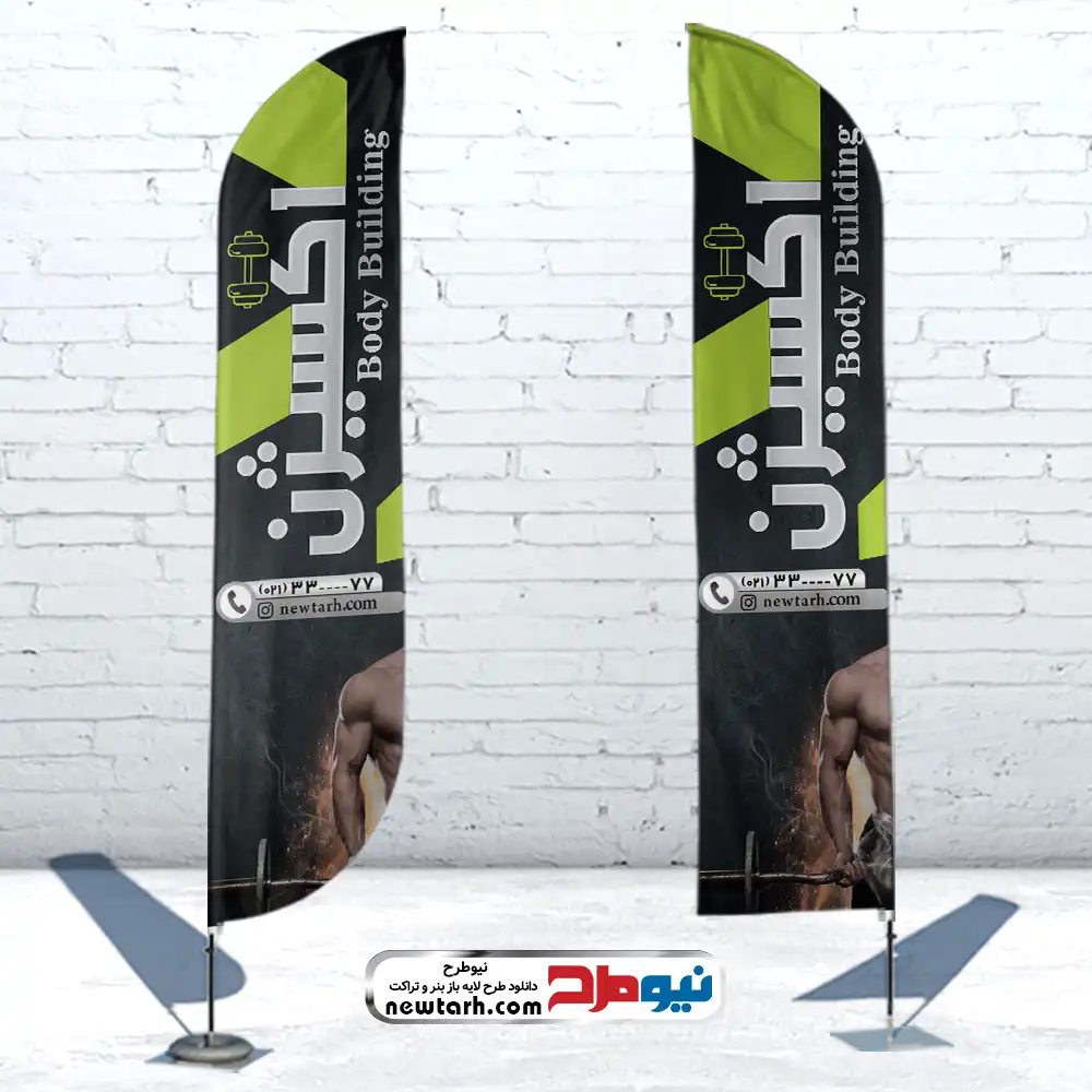 طرح پرچم بادبانی سالن بدنسازی با فرمت psd