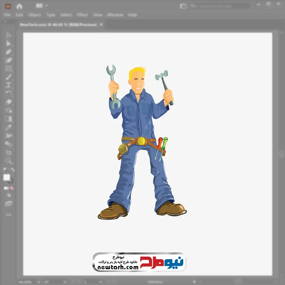فایل وکتور تعمیرکار با ابزار در دست با فرمت eps بوده، از همین رو قابل ویرایش در نرمافزار Adobe illustrator و سایر نرم افزارهای گرافیکی است.