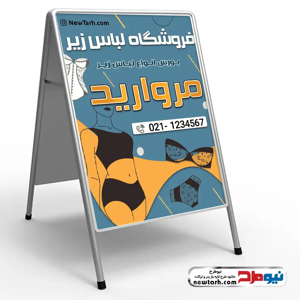 در نهایت این موضوع را در نظر داشته باشید که خدمات ویرایش اختصاصی فایل طرح psd تابلو تاشو فروشگاه لباس زیر با هزینه اضافی انجام خواهد شد؛ برای این منظور با شماره پشتیبانی سایت در تماس باشید.